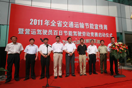 2011611日上午,由山東省交通運輸廳主辦的“2011年全省交通運輸節能宣傳周暨營運駕駛員百日節能駕駛勞動競賽”啟動儀式,在濟南長途汽車總站東廣場隆重舉行。來自省交通運輸廳、省節能辦、市交通運輸局的有關領導出席了活動,并在發車現場向客車駕駛員發放節能駕駛手冊等宣傳資料。集團公司總經理、黨委副書記王謙出席活動并講話。