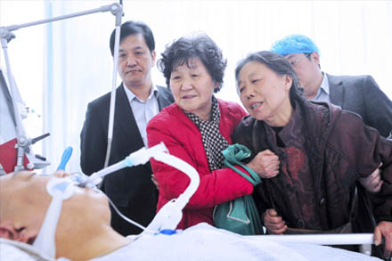 310,山東交運(yùn)集團(tuán)董事長吳宗昌、總經(jīng)理王謙來到山大二院重癥監(jiān)護(hù)中心,看望慰問了宋洋的母親并送上了慰問金。宋洋母親聊起兒子的成長經(jīng)歷,數(shù)次哽咽,盼望兒子快點(diǎn)康復(fù),再能回到崗位工作。隨后,吳董和王總陪同宋洋母親進(jìn)入監(jiān)護(hù)病房看望宋洋,囑咐老人保重身體。311,山東交運(yùn)集團(tuán)組織集團(tuán)公司總部百余名員工在集團(tuán)公司總部一樓大廳舉行了“向大愛司機(jī)、乘客衛(wèi)士宋洋同志捐款儀式”,共捐款3萬余元。當(dāng)天參加捐款有宋洋的同事、朋友以及聞訊趕來的熱心市民,他們紛紛為宋洋祈福,愿他早日戰(zhàn)勝病魔早日康復(fù)。