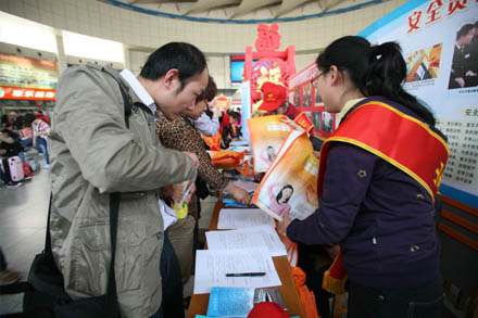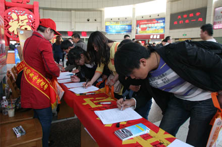 在總站候車大廳關注災區(qū)群眾、祈福平安簽字現場,設置了氣象災難、氣象預警及預防科普知識展板,志愿者將宣傳材料發(fā)放到每一名旅客手中,并邀請他們在簽名條幅上寫下對雅安地震災區(qū)群眾的祝福話語和姓名,為雅安的災區(qū)人民祈福。