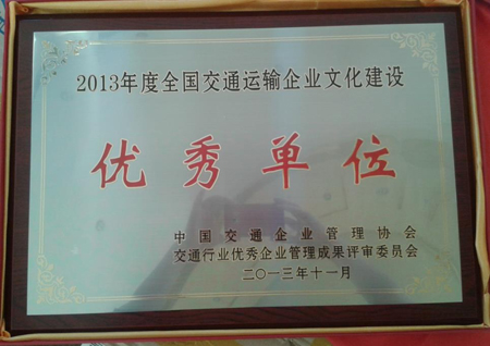 11月25日,在中國(guó)交通企業(yè)管理協(xié)會(huì)、交通行業(yè)優(yōu)秀企業(yè)管理成果評(píng)審委員會(huì)在廣州組織召開的“第八屆全國(guó)交通運(yùn)輸企業(yè)文化建設(shè)高峰會(huì)”上,集團(tuán)公司榮膺“2013年度全國(guó)交通運(yùn)輸企業(yè)文化建設(shè)優(yōu)秀單位”榮譽(yù)稱號(hào)。