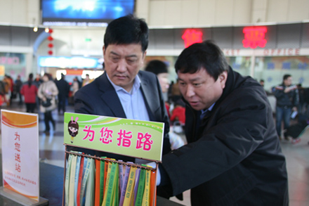 吳董事長首先來到總站候車大廳,詳細詢問了目前春運客流情況和運力部署,認真聽取了總站針對春運工作所推出的一系列便民舉措及特色服務的實施情況,對總站在春運期間推出的“春運服務直通車”、“陽光送站港”以及“春運團購售票窗口”等便民服務給予肯定。視察中,吳董來到候車廳具有濃濃節(jié)日氛圍的年貨大街,詳細詢問商品的種類、質(zhì)量、價格等具體情況,稱贊此舉為春節(jié)期間旅客置辦年貨提供了實實在在的便利,是總站開闊經(jīng)營思路,拓寬發(fā)展空間的務實之舉。吳董事長專程來到濟萊快客檢票口,登上班車,體驗了車內(nèi)的WIFI網(wǎng)絡,了解了車內(nèi)投幣箱等設備的具體使用情況。