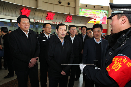 張省長一行首先查看了總站旅客進站安檢處,詳細了解總站春運安檢工作情況,并對總站應用“摩爾”探測儀、防爆桶等有效防范危險爆炸物品的做法表示了充分肯定。當得知總站實現春運前期安檢“零隱患”目標時,張省長既感到欣慰,又十分關切地提醒工作人員不能有絲毫放松和懈怠,要堅決堵住危險品進站上車,時刻繃緊安全生產這根弦,堅持一抓到底、一以貫之、一如既往地抓好企業安全生產工作。