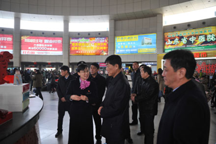 齊建中副市長先后視察了總站安檢處、總服務臺、檢票口、駕駛員報班處、安全監控中心,詳細了解了“三品”安檢及便民、利民的創新服務,并與總站一線員工進行了親切的交談,詳細詢問了春運期間工作情況。