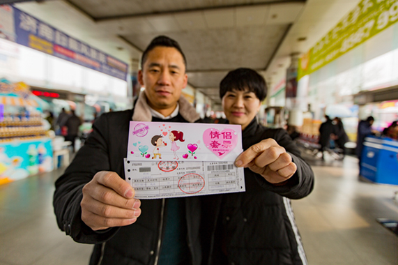 “喜樂會”扮靚行程  元宵節、情人節臨近,總站南區針對情侶、夫妻推出“心有靈犀猜猜猜”有獎猜謎活動,猜中即可參與“砸金蛋、贏大獎”,愛心情侶套票、9折乘車優惠卡等精美禮品。兔兔快運推出“啟發浪漫,速達愛情”鮮花易購活動,即情人節當天,提供八組寓意美好的花束優惠套餐,并享市區內免費配送服務。同時派出由女職工組成的“鮮花速達隊”走進車廂,把浪漫和情意傳遞到每一位旅客身邊,為廣大旅客的旅途送上一份甜蜜與祝福。