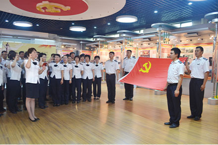 通過觀看黨史館的文獻資料及歷史圖片,大家共同追尋紅色記憶,重溫歷史,不但了解和學習了中國共產黨從大革命時期到改革開放以來不斷發展的歷史過程,也充分了領略了在黨的正確領導下,中國人民勤勞勇敢、奮斗創業的華彩篇章。在鮮紅的黨旗下,全體黨員莊嚴宣誓,重溫入黨誓詞,增強了作為黨員干部的責任意識。
