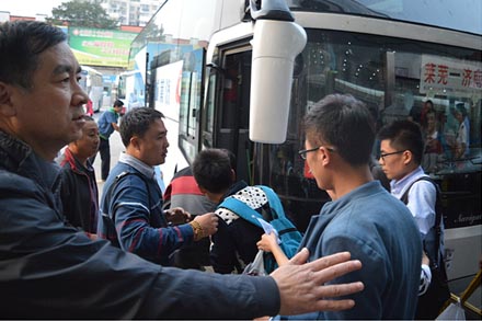 第三客運分公司“濟萊城際快客”自成立以來,因其便利、低價、舒適的運行特點吸引著濟萊兩地出行的旅客。為做好今年國慶黃金周旅客運輸工作,公司在節前召開動員會,對各項工作進行全面部署。對安全行車及GPS3G視頻監控等工作進行重點強調,堅決杜絕疲勞駕駛、超速等違章行為;對所有參運車輛進行了安全大檢查,保障車輛節日期間不出現途中機械故障,確保營運安全;為所有值班駕駛員和調度提供葷素均衡營養套餐,由專人將熱騰騰的飯菜送到一線,為工作人員解決后顧之憂。節日期間公司領導班子成員及全體職工全天堅守在發車現場,在客流高峰日及時調派加班班車,緩解運輸壓力,疏導出行旅客。930日至107日,“濟萊城際快客”旅客發送量創新高,達到去年同期發送量的5倍,取得了濟萊城際快客成立后的首個國慶開門紅。
