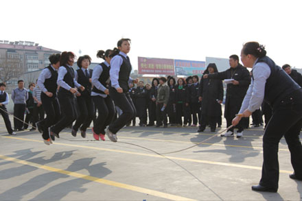 您現在的位置是:首頁 > 客運場站產業 趣味運動慶三八 次 客運場站產業 發布時間:2015-03-17 17:57:40 趣味運動慶三八 3月6日,濟南長途汽車總站南區舉辦了“慶三八趣味運動會”,讓一直忙碌在客運一線的女職工們度過了一個快樂健康、團結拼搏的另類“三八”節。 本次運動會共設置了 “跳大繩”、“旱地龍舟”等項活動,以展示“職工體育文化魅力”、增強“職工業余生活樂趣”、提高“職工工作凝聚力”,從而營造一個“熱愛運動、享受健康、全民健身”的積極氛圍,把運動激情轉化為服務熱情投入到為旅客服務的日常工作中去。(南區宣)