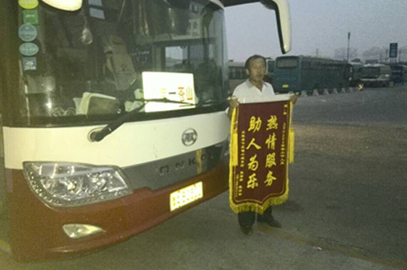 916上午,魯AB0322客車在執行濟南至蒼山客運任務時,乘客戴洪田突發疾病,臉色蒼白,隨車人員趙華成發現情況危急,立即撥打電話120向醫院求助,駕駛員王恩喜選擇最近的路口下了高速,不到十分鐘時間120救護車把病情危急的乘客順利接走后經了解,該乘客轉危為安。事后乘客家屬獲悉乘坐車輛所在單位為山東交運集團第一客運分公司,特意從臨沂老家趕到濟南送上錦旗,感謝當天施救之恩。