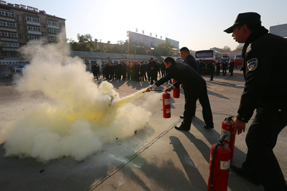 11月3日下午3點,總站南區(qū)開展了冬季安全綜合演練.首先治安科科長結合車站惡劣天氣應急預案和“11.9”消防日的活動方案進行了宣貫培訓,明確了各科室的職責分工和消防器材使用方法;隨后參加人員逐一進行了滅火操作,親身體驗用滅火器滅火的操作過程;最后,車站領導重點對各部門安全用電、站內(nèi)消防、安全培訓等七方面內(nèi)容進行了檢查。